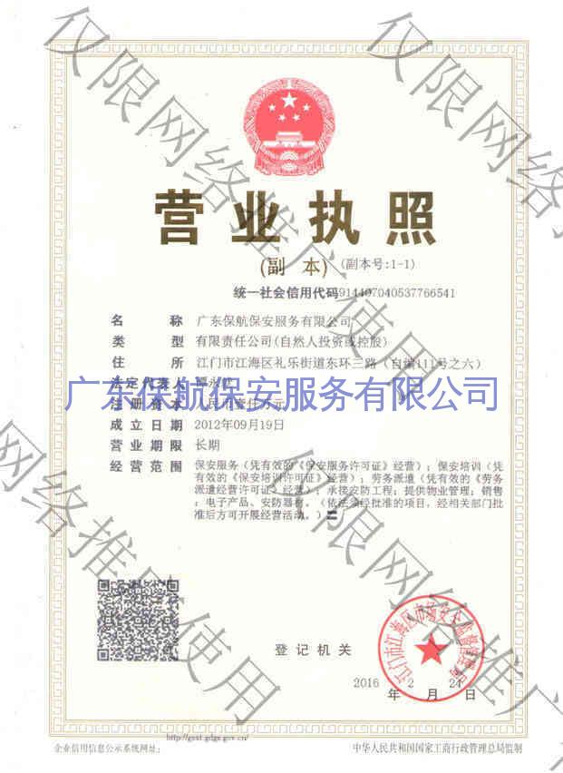 营业执照,江门保安公司